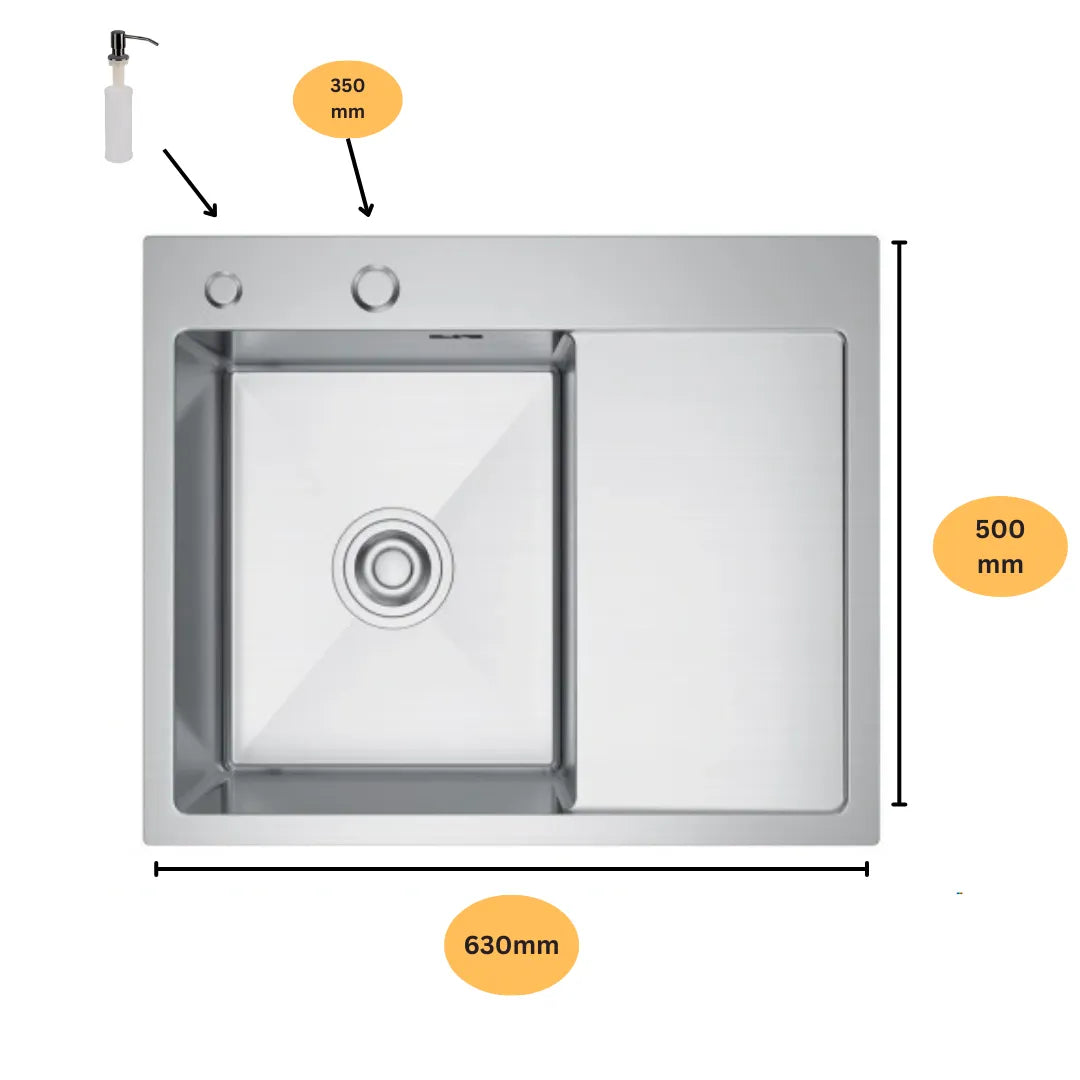 Dostępny w wersjach jednokomorowych i dwukomorowych, z ociekaczem lub bez, a także w kształcie prostokątnym i okrągłym. Model tłoczony łatwo dopasować do stylu oraz układu blatu, a jego powierzchnia sprzyja szybkiemu czyszczeniu i codziennej wygodzie użytkowania.