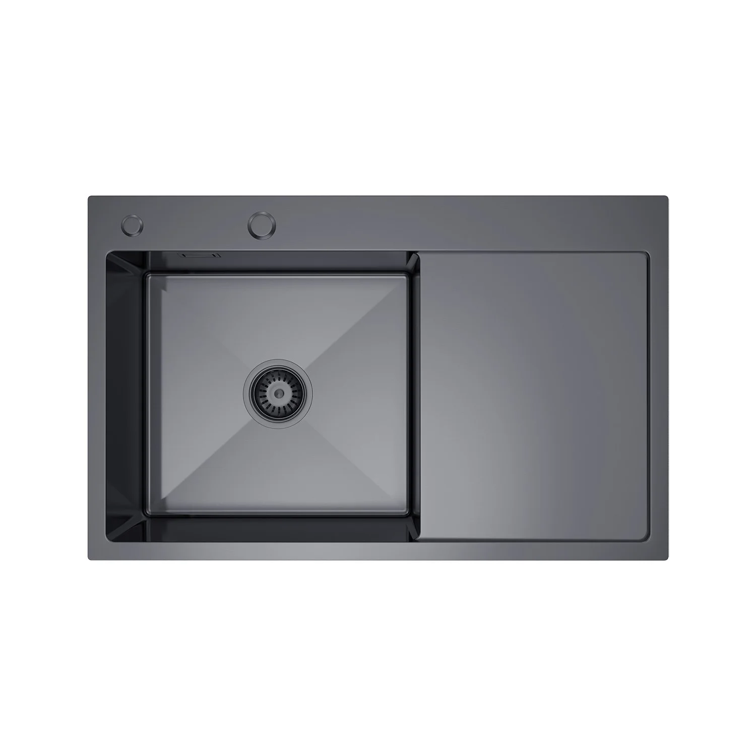 Jednokomorowy Zlewozmywak Stalowy z Ociekaczem 78x49 cm Grafitowy PVD