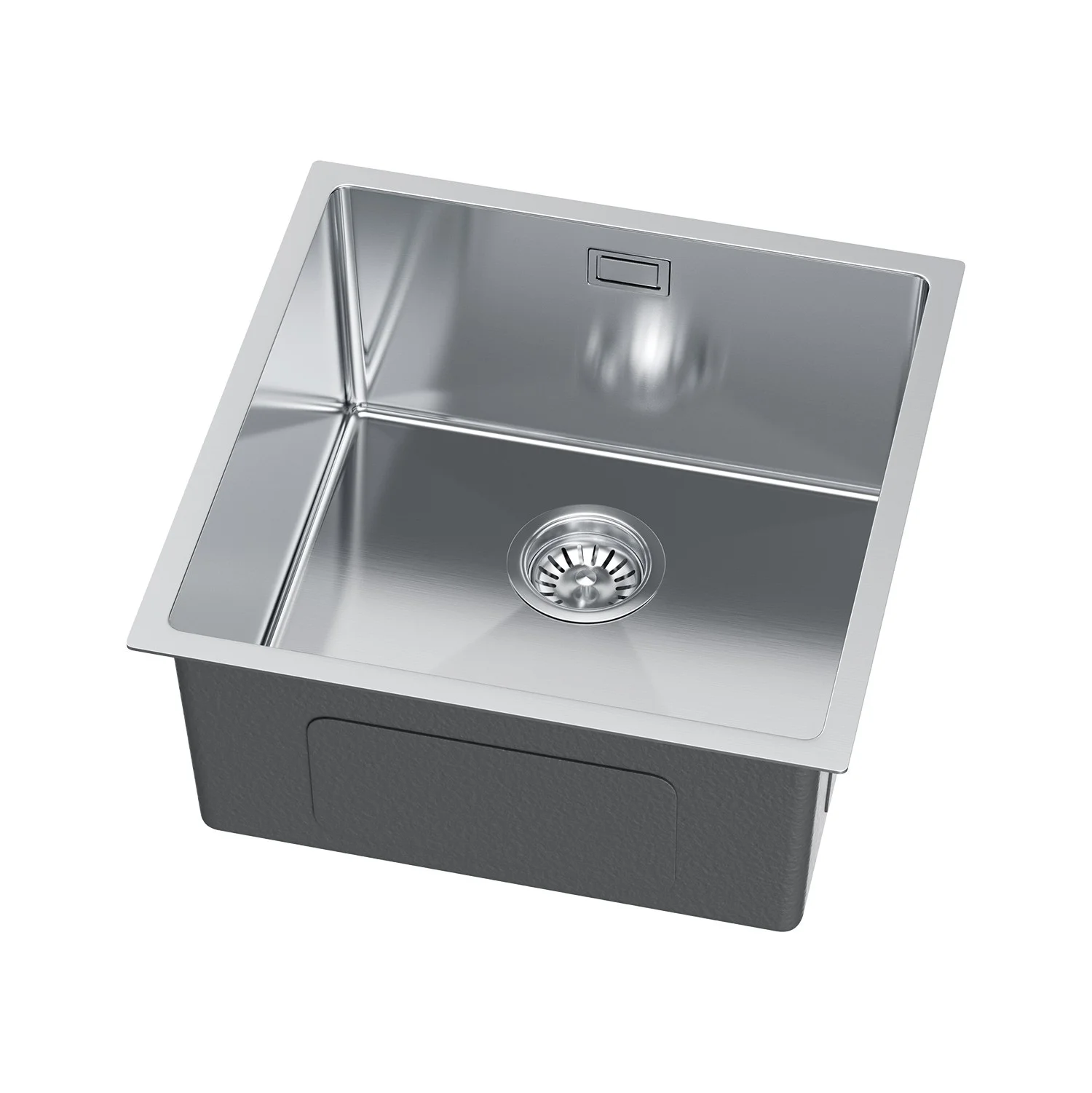 Zlewozmywak 44×44 cm ze stali nierdzewnej — jednokomorowy, Inox (satyna szczotkowana), komora 40×40 cm, grubość 0,8 mm
