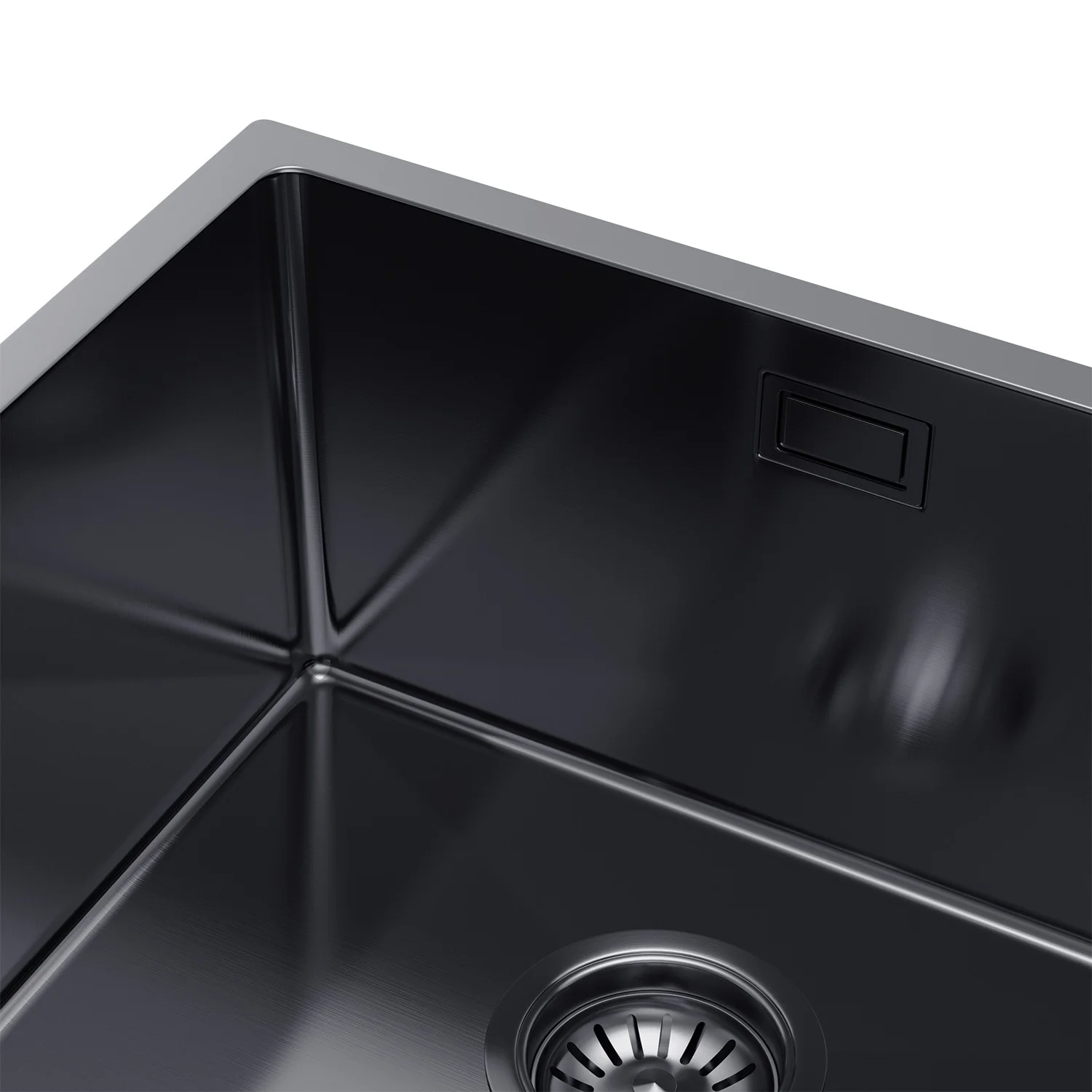 Jednokomorowy zlewozmywak 44 × 44 × 21 cm ze stali nierdzewnej w kolorze grafitowym PVD, z wykończeniem satyna szczotkowana.