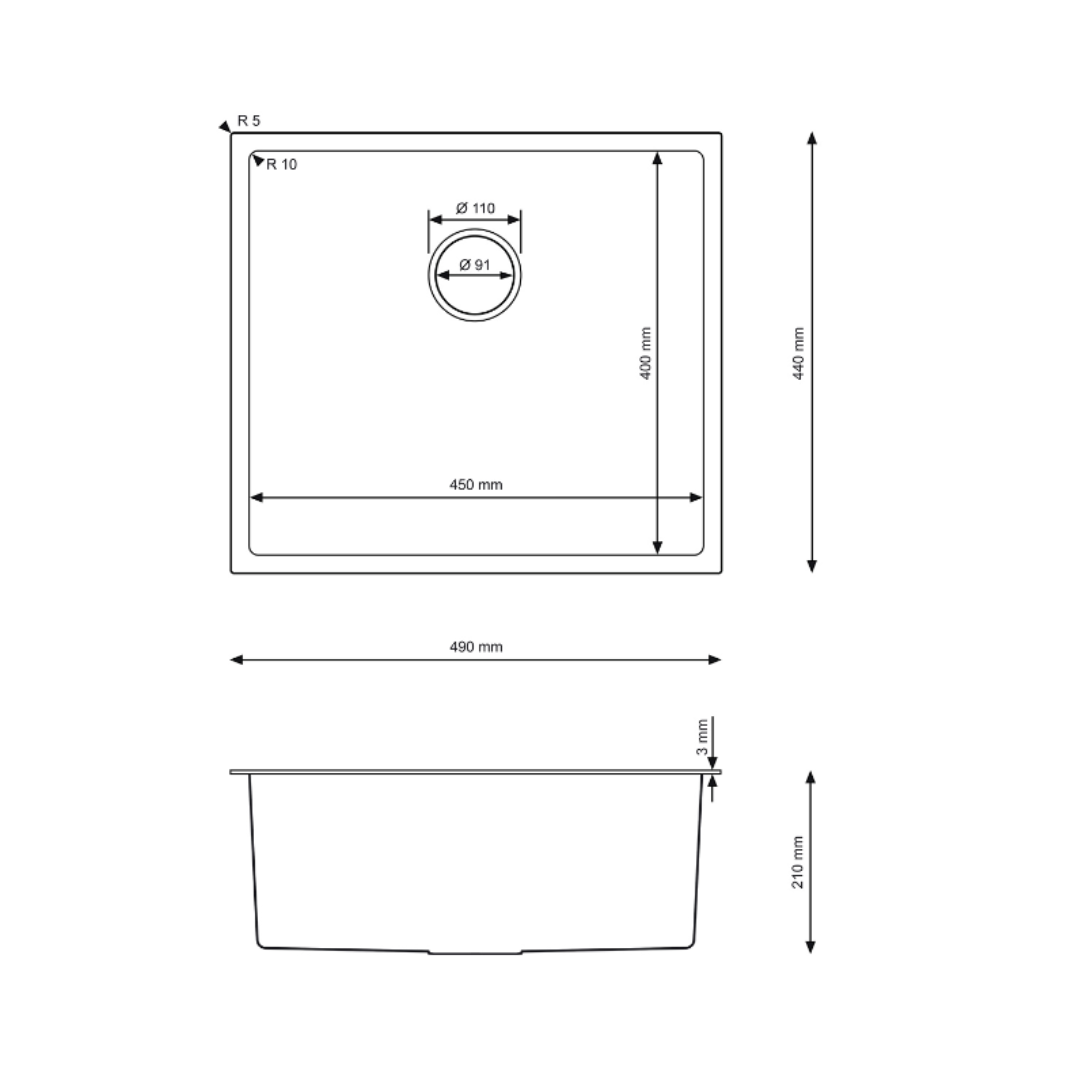 Zlewozmywak 49x44 cm – Stal Nierdzewna, PVD Złoty, 1-komorowy, nablatowy, z przelewem