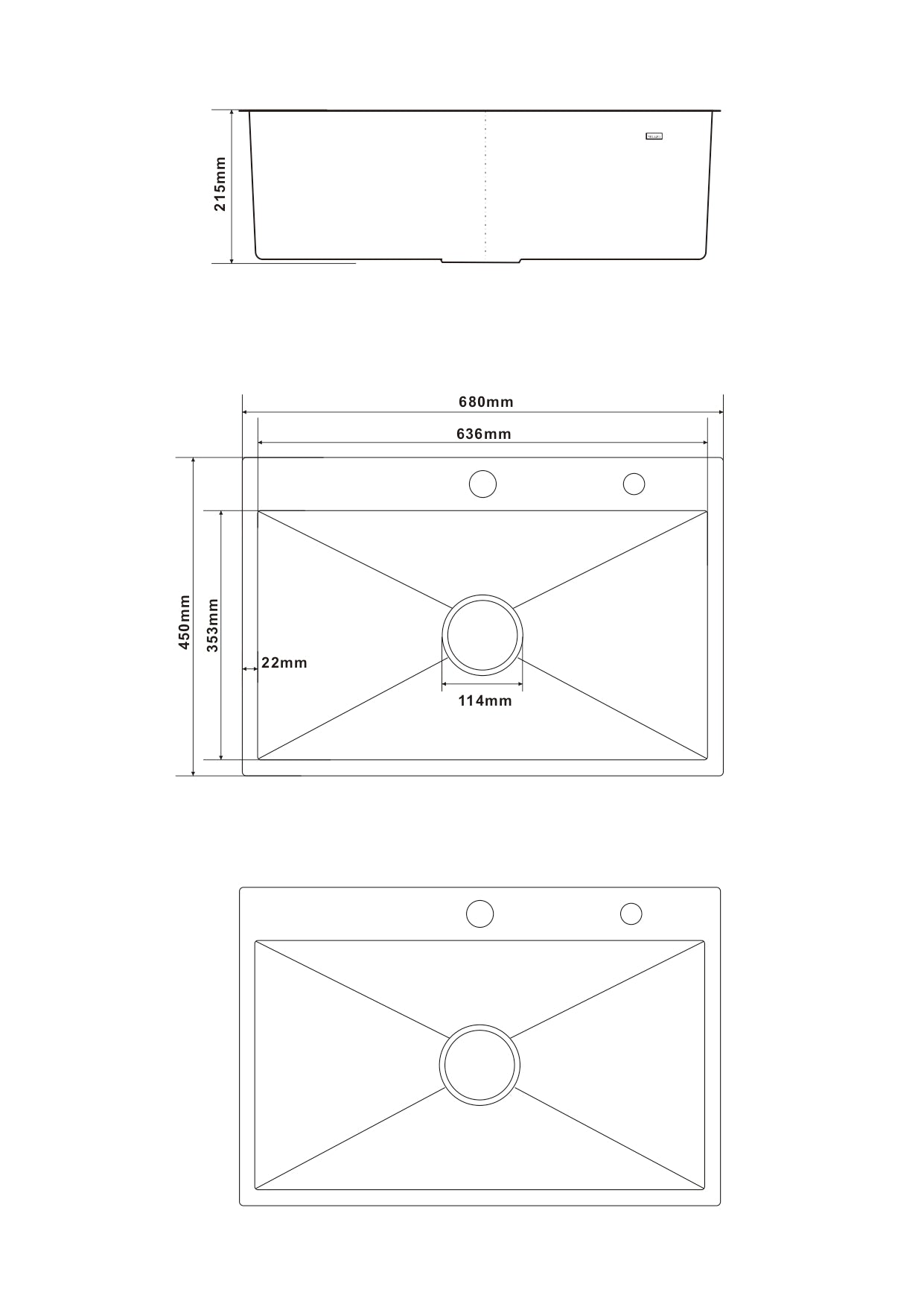Zlewozmywak 68x45 cm – Stal Nierdzewna INOX, 1-komorowy, nablatowy, z przelewem i otworem na baterię
