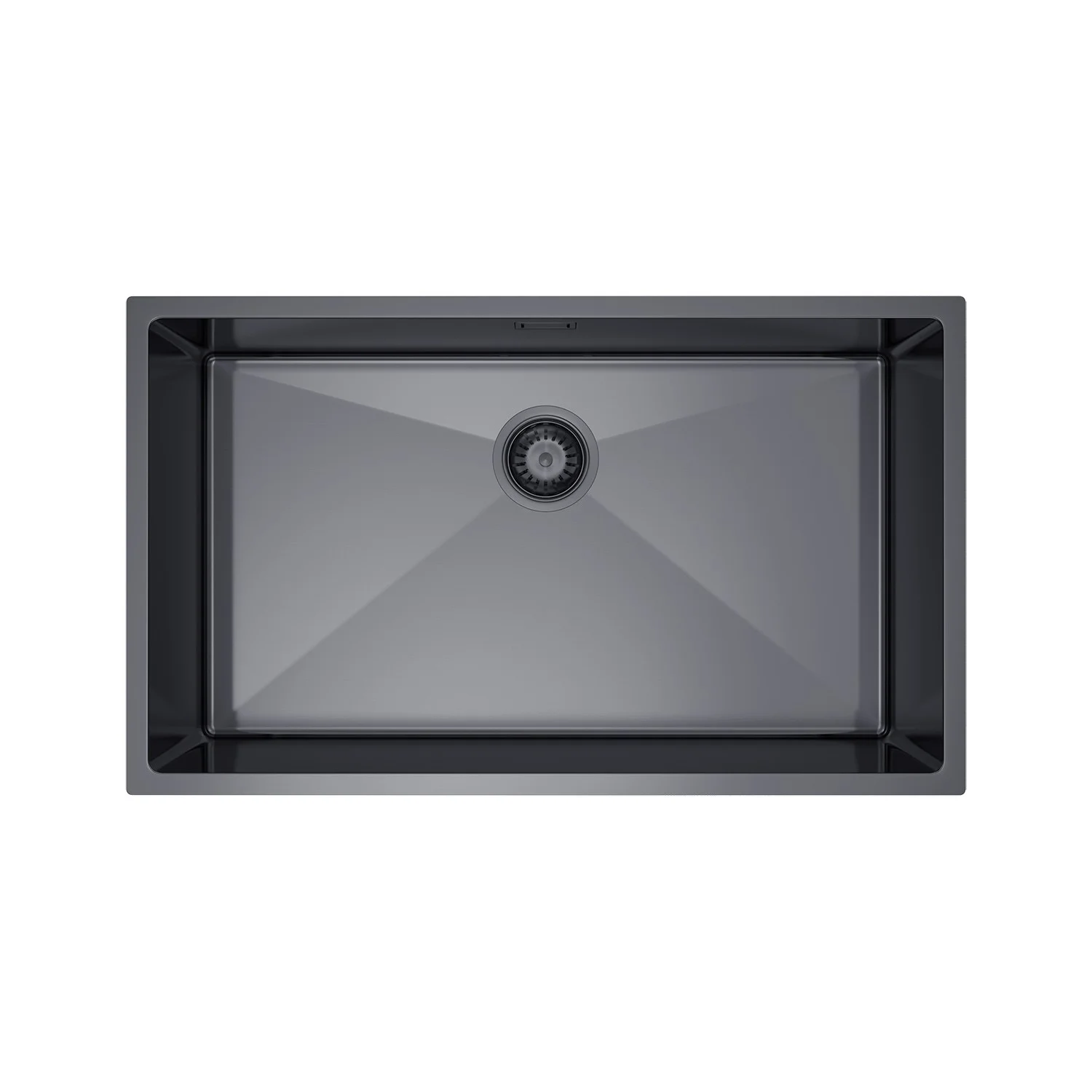 Zlewozmywak 74×44 cm ze stali nierdzewnej — jednokomorowy, PVD grafit (satyna szczotkowana), nablatowy/podwieszany, głębokość 210 mm, z przelewem, odpływ 114 mm