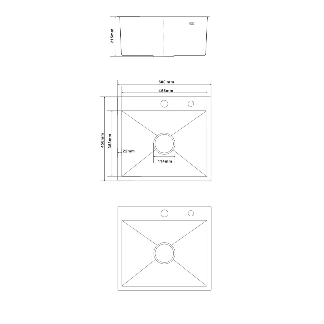 Zlewozmywak Kuchenny 50x45 cm PVD Złoty — Stal Nierdzewna, Jednokomorowy, Nablatowy, Otwór 35 mm, Przelew, Odpływ 114 mm