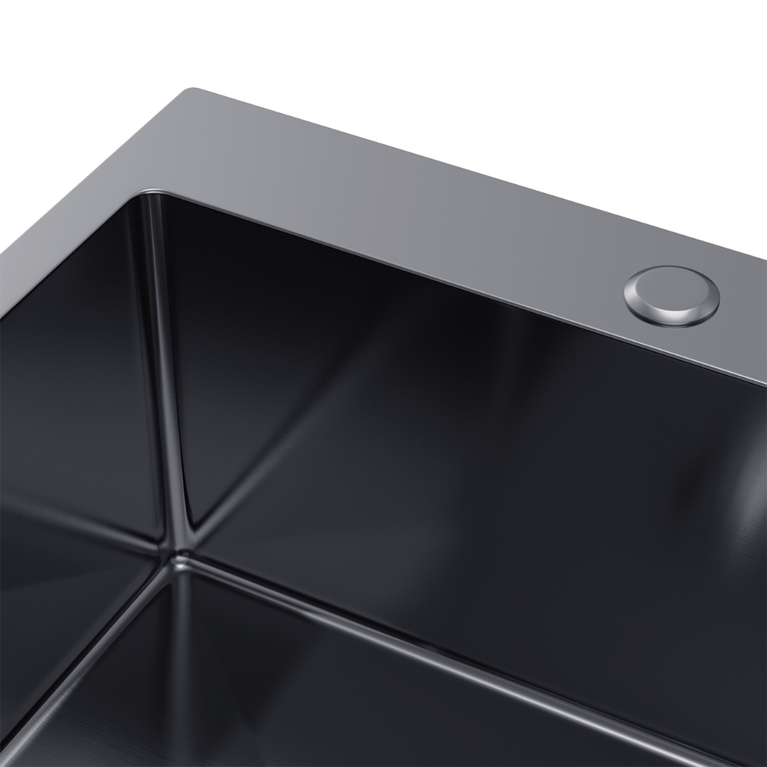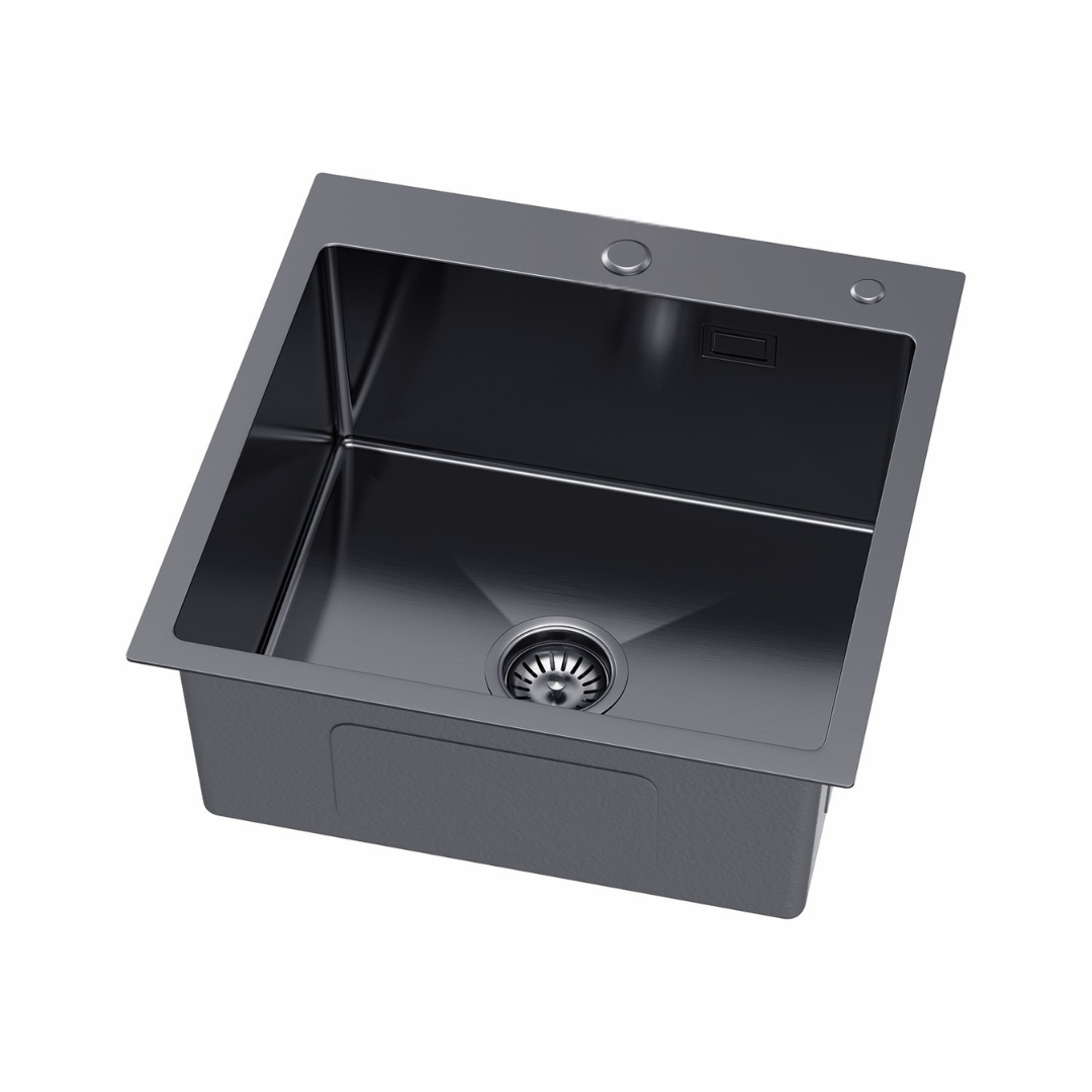 Zlewozmywak Kuchenny 50x50 cm Grafitowy — Stal Nierdzewna, Jednokomorowy, Szczotkowane Wykończenie, Otwór 35 mm, Przelew, Głębokość 210 mm