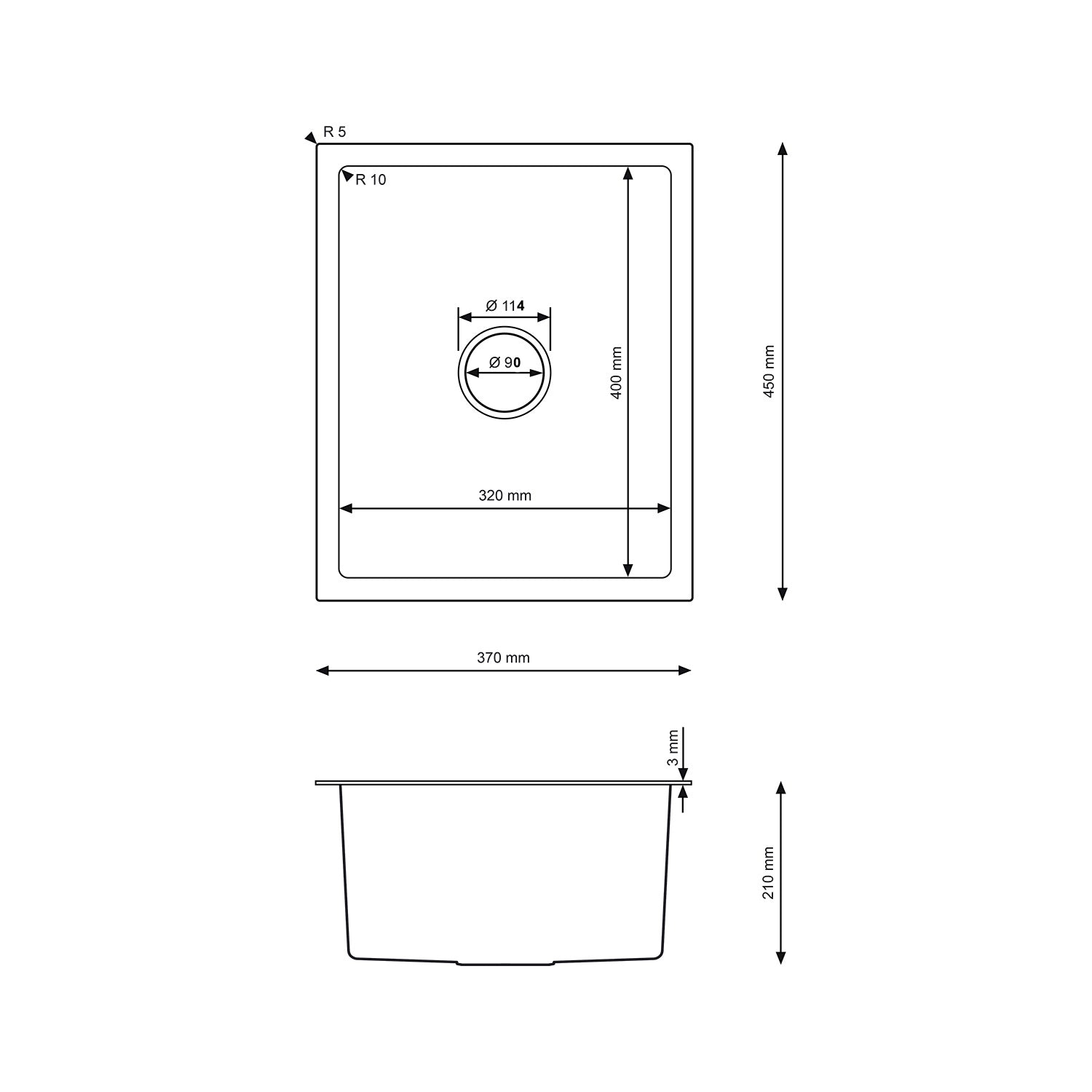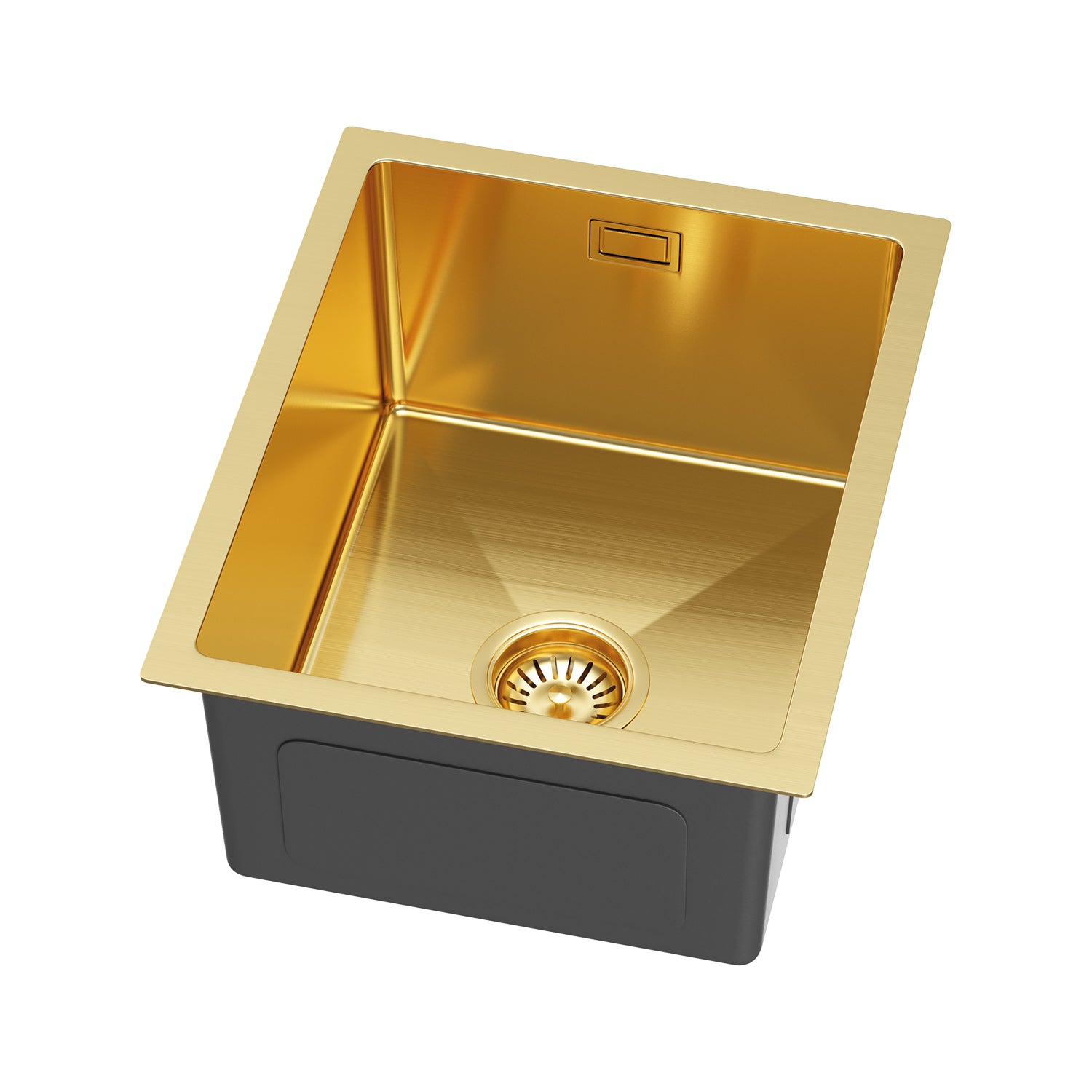 Zlewozmywak Stalowy 37x45 cm PVD Złoty (Satyna) — Jednokomorowy, Nablatowy/Podwieszany, Głębokość 210 mm, Przelew