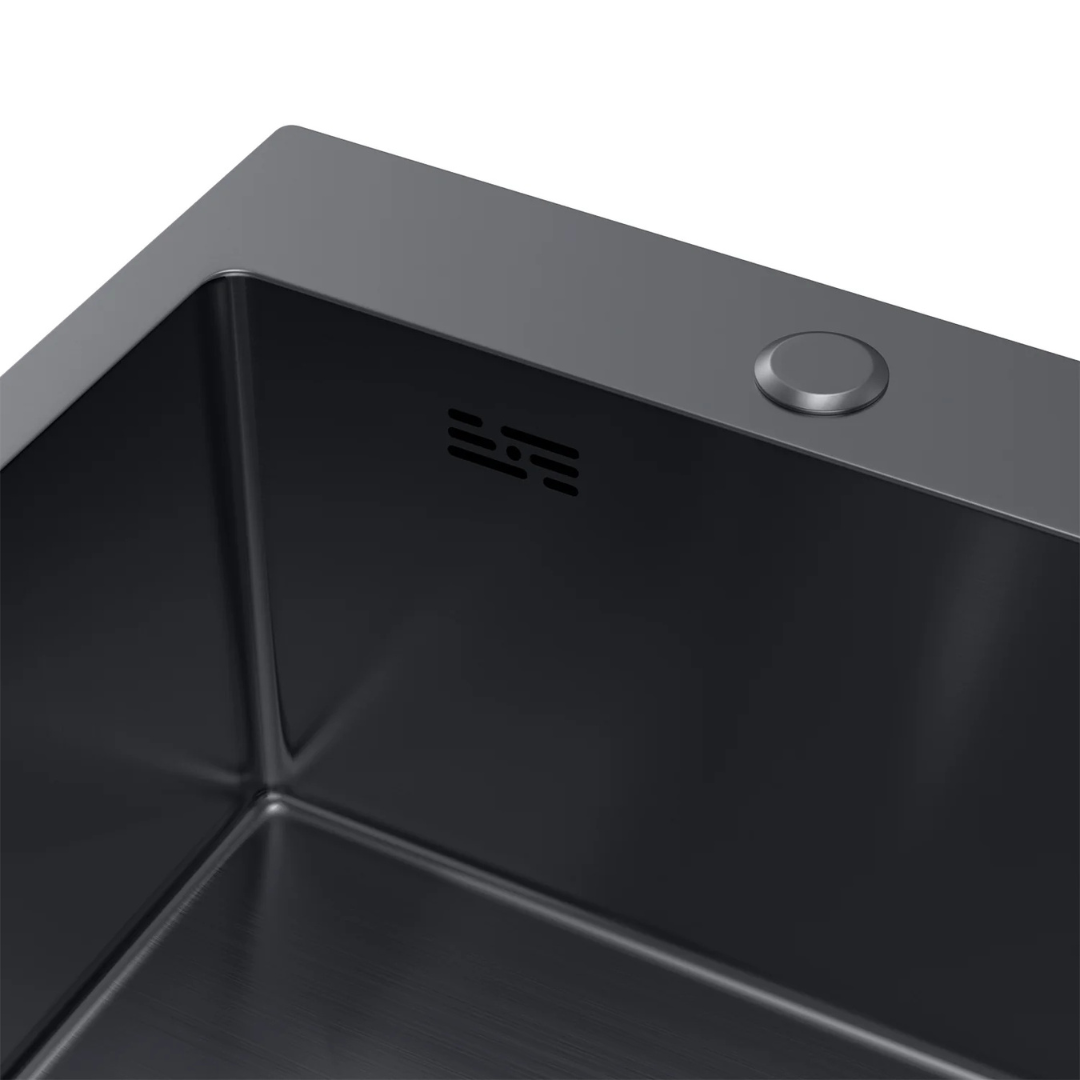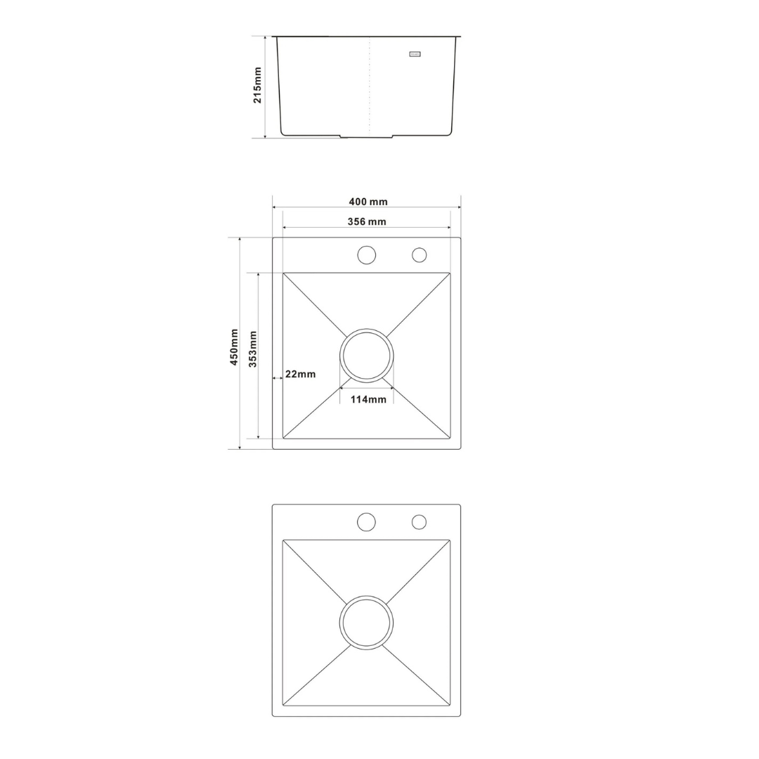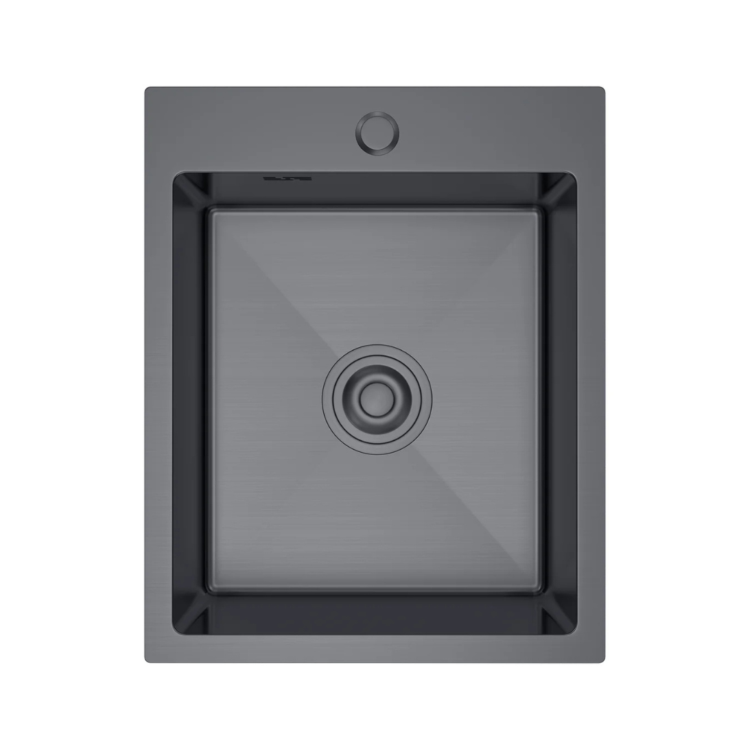 Zlewozmywak Stalowy 40x45 cm PVD Grafit — Jednokomorowy, Wpuszczany, Głębokość 210 mm, Otwór 35 mm, Przelew, Odpływ 114 mm
