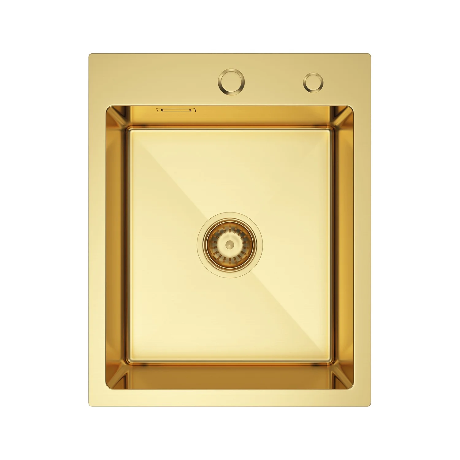 Zlewozmywak Stalowy 40x50 cm PVD Złoty (Satyna) — Jednokomorowy, Głębokość 210 mm, Otwór 35 mm, Przelew, Odpływ 114 mm