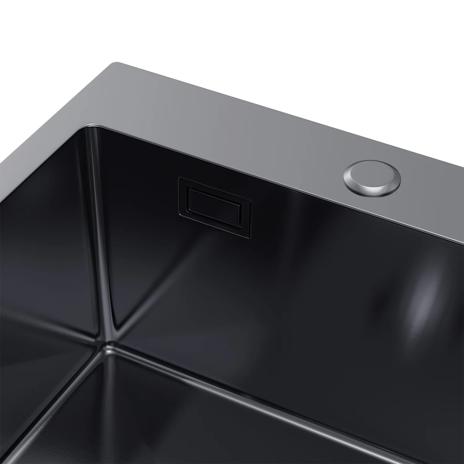 Zlewozmywak Stalowy 46x45 cm PVD Grafit (Satyna) — Jednokomorowy, Wpuszczany, Głębokość 210 mm, Otwór 35 mm, Przelew, Odpływ 114 mm