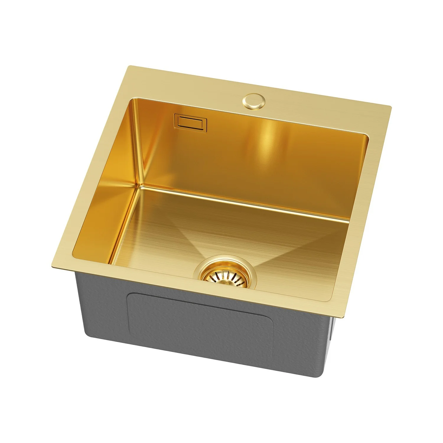 Zlewozmywak Stalowy 46x45 cm Złoty (Satyna) — Jednokomorowy, Głębokość 210 mm, Otwór 35 mm, Przelew, Odpływ 114 mm
