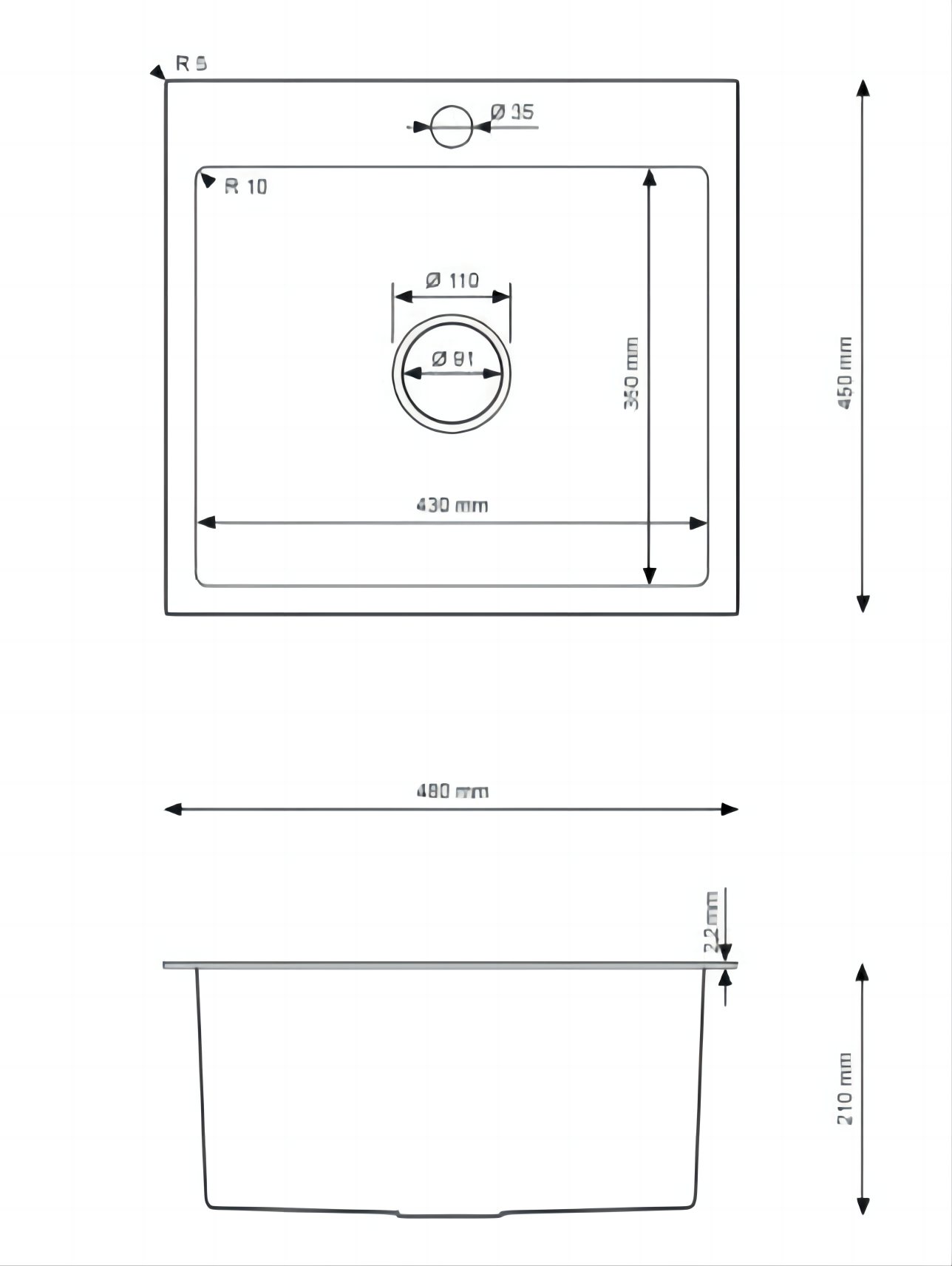Zlewozmywak Stalowy Jednokomorowy 48x45 cm Inox Srebrny z Otworem na Baterię