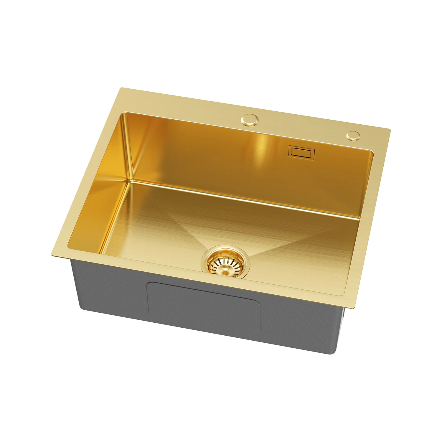 Zlewozmywak Stalowy Jednokomorowy 60x50 cm PVD Złoty z Syfonem i Otworem Przelewowym